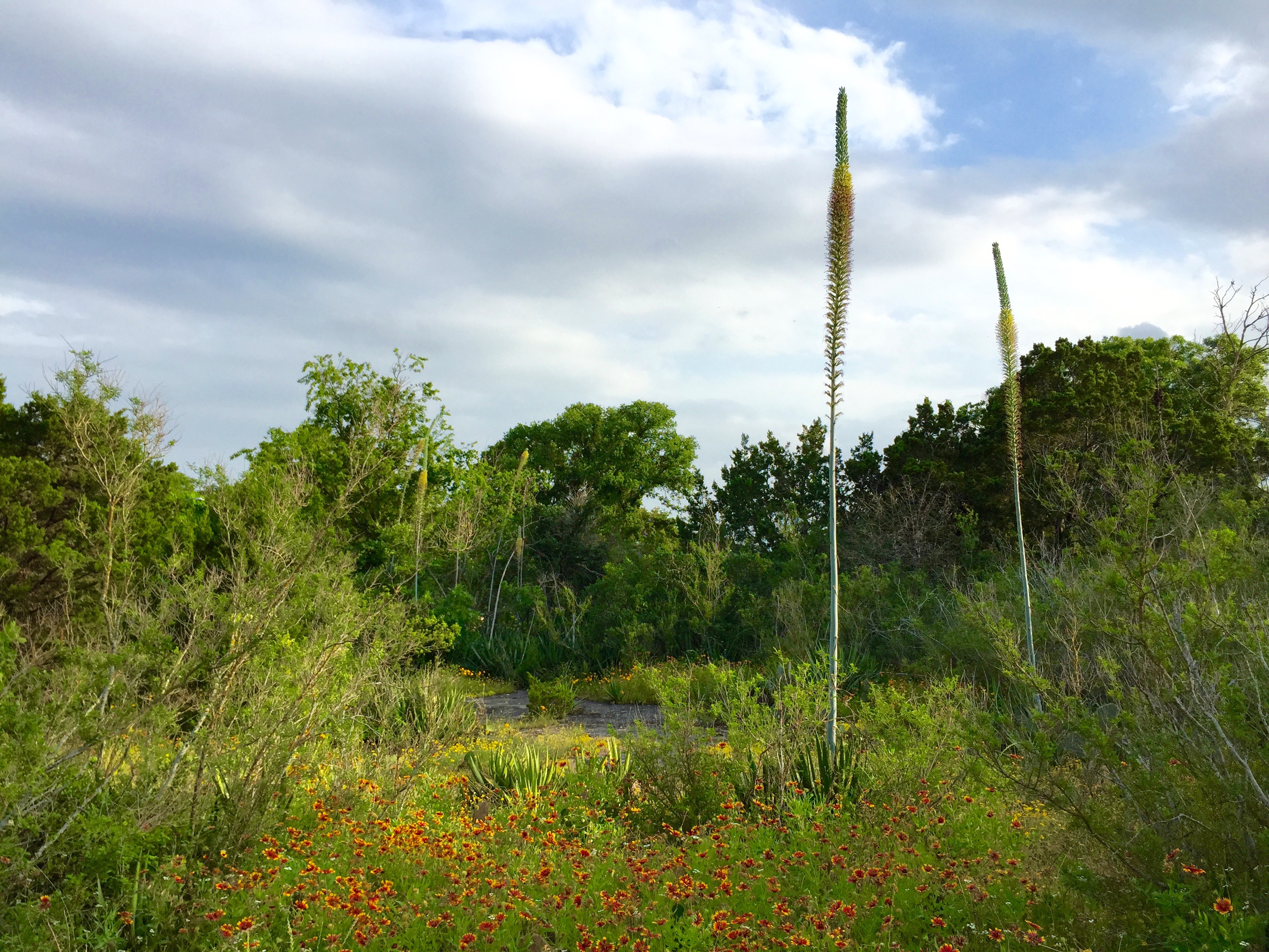 Less than a mile from my home, a wooded public park is now a second home base for me. A public school was originally intended for the site, but after schools for neighborhood children were built elsewhere, the City of Austin set the land aside for green space. A small web of trails crisscrosses the center, but the core of the twelve-acre park is uncultivated, a place where plant life and death are allowed to unfold as they will, instead of being carefully edited by human hands, as they often are in our home gardens. Neighbors jog, walk dogs, or enjoy the playground there, and at least one Witch visits regularly at dusk to pick up trash, observe nature, and meditate. In winter, around the grove where I sit, male Ashe juniper trees release pollen, and female trees fill out with bright blue berries that blare sharp, dry notes of pine and citrus on my tongue. In spring, poison ivy vines climb live oak trunks, and in summer, agaves flower and die. Snakes, foxes, bats, bees, ants, grasshoppers, cedar waxwings, mockingbirds, robins, and finches hunt for food and mates. Wildflowers and grasses blanket the thin topsoil of open spaces and ripple against the restless breeze. The park lies on karst limestone, and neighborhood myth even has it that the site once contained a cave.