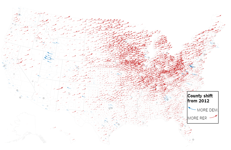 aside from ideology/party) of how one would vote. Fully 81% of white Christian evangelicals voted for Trump, to Clinton’s 16% – a five fold difference, and the highest proportion any candidate has ever received since data has been kept. And it wasn’t just evangelicals. Catholics, Mormons, Protestants and “other Christians” all voted for Trump with strong majorities. The idea that anger over waning Christian privilege accounted for a significant amount of Trump’s victory is not my idea, and the map from that article shows the states with the highest proportion of white Christians. Comparing it to the map at the top of this post (of the swing compared to 2012), one can see a lot of overlap. Maybe the media will start talking about Christian privilege. It’s still hardly ever mentioned, even though it is clearly becoming the elephant in the room. After all, silence is the main tool of privilege of any kind.