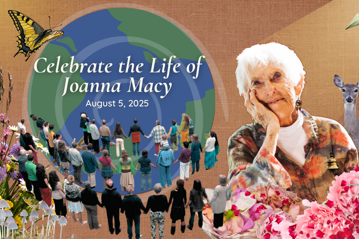 Joanna Macy lived a powerful life that touched and inspired millions of us.  While her life has ended as all our lives will end, her legacy lives on in us and others, and a celebration of her life will be held (with online availability) this coming Tuesday, August 5th